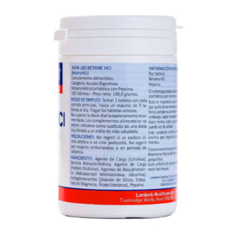 La Betaina Clorhidrato con Pepsina es un suplemento nutricional que acompaña el proceso digestivo, especialmente la digestión de las proteínas 🥩.