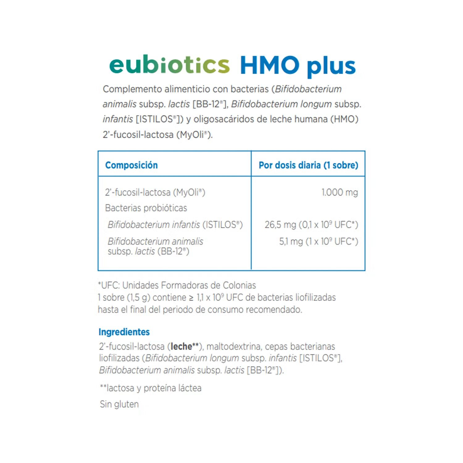 Eubiotics HMO Plus aporta HMO, compuestos que no se digieren directamente, sino que nutren selectivamente a las bacterias beneficiosas, favoreciendo un entorno intestinal más estable y funcional 🌿.