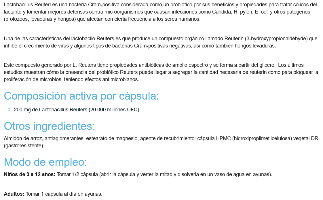 Fepa Reuteri es un suplemento probiótico basado en Lactobacillus reuteri LR 92, una bacteria probiótica de origen humano que forma parte natural de la microbiota intestinal 🦠.