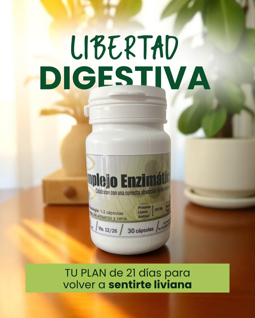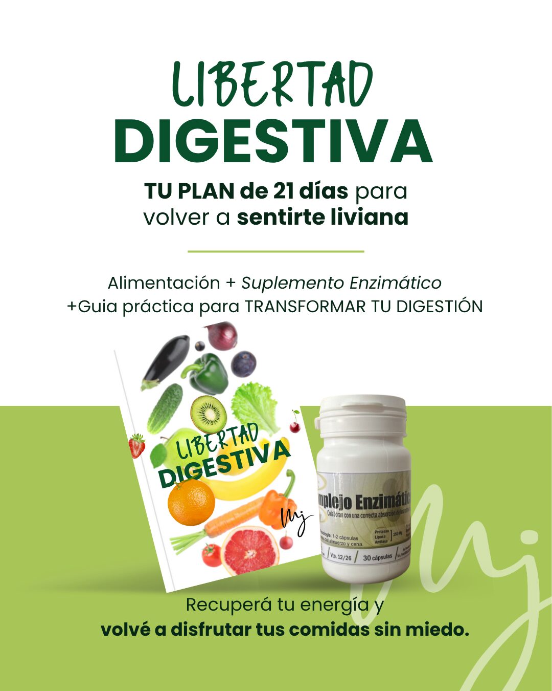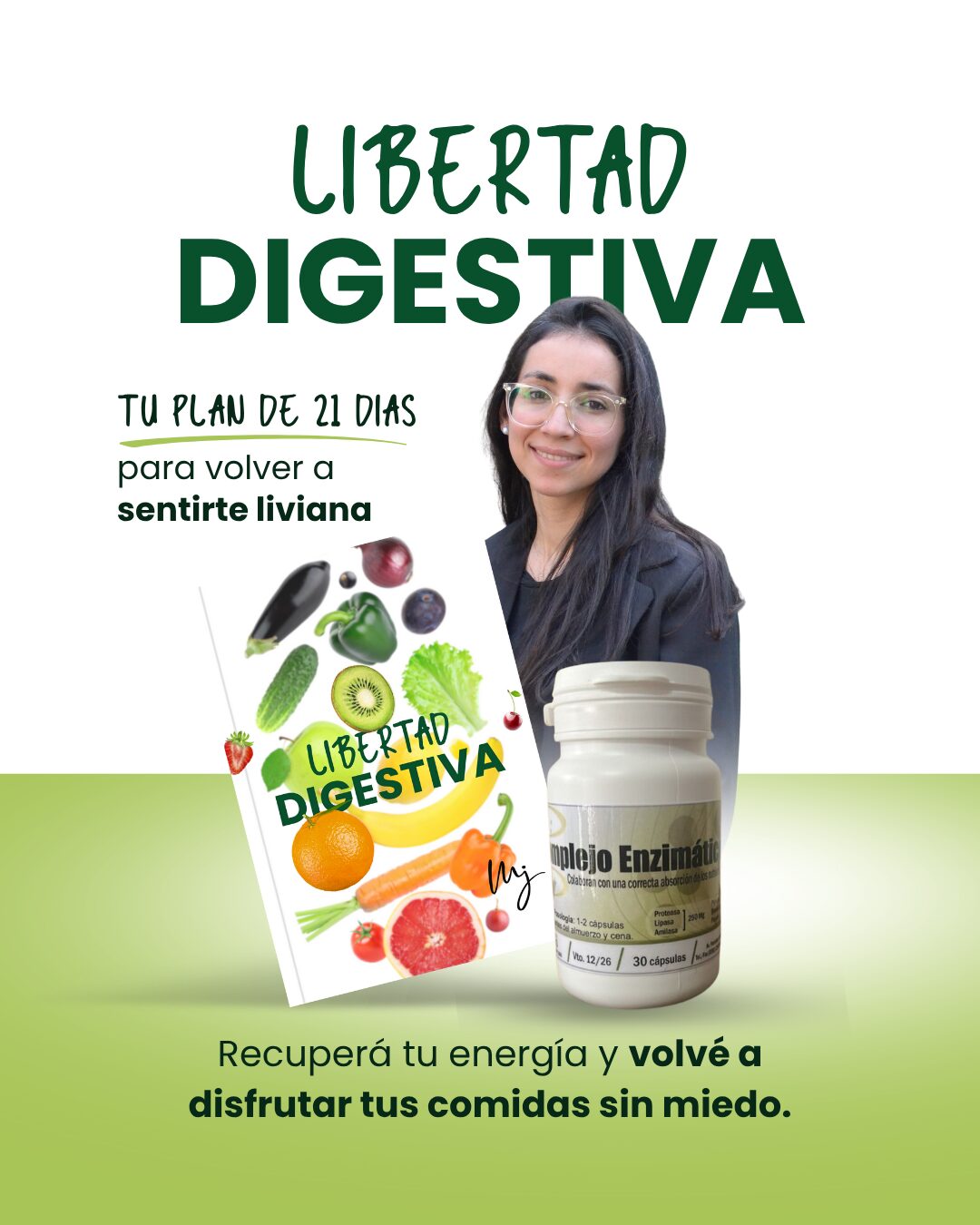 ✔️ Suplemento enzimático (1 frasco) → para potenciar tu digestión desde la primera comida.